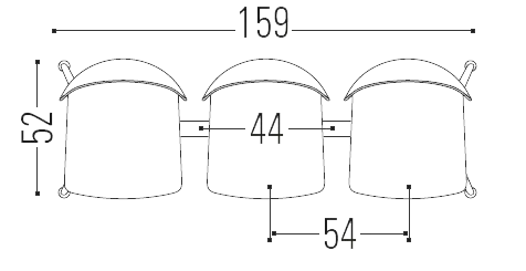 La bancada no incorpora brazos, lo que facilita el acceso lateral y aporta una sensación visual más ligera, optimizando el espacio en zonas de espera o paso continuo. La estructura inferior de aluminio inyectado garantiza precisión, ligereza y reciclabilidad, además de un acabado de alta calidad que resiste perfectamente el uso diario. La viga estructural inferior, fabricada en tubo de acero de sección circular de 60 mm y 3 mm de espesor, actúa como soporte principal, proporcionando una estabilidad sólida y duradera incluso en usos colectivos intensivos.