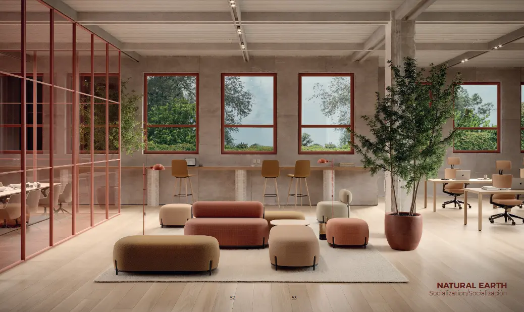 Una gama de rojos terrosos, arenas y marrones que evocan naturaleza, confort y estabilidad. Perfecta para oficinas elegantes, áreas de espera o espacios con carácter acogedor.