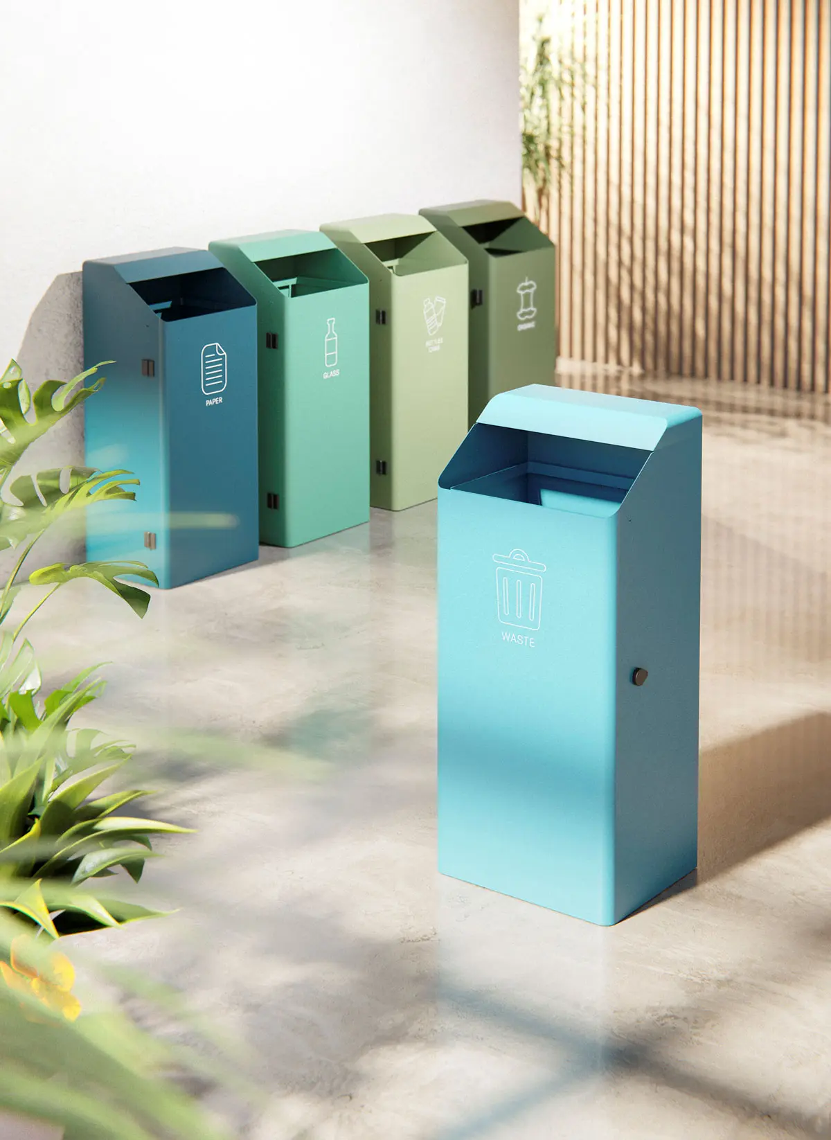 • Papeleras metálicas, papeleras de reciclaje y cubos de pedal
