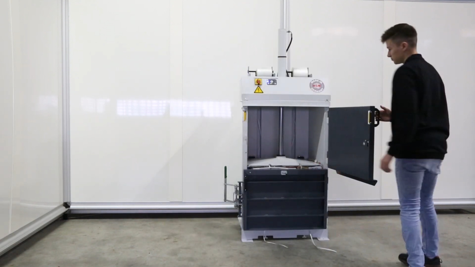 El manejo de la prensa es muy sencillo y seguro. La prensa es muy compacta y ocupa muy poco espacio, por lo que es ideal en pequeños almacenes, supermercados y todo tipo de empresas que generen residuos. La prensa HSM 503 eco puede hacer balas de hasta 50 kg. en tan solo 3,13 m³/h .