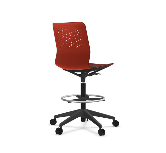 Banqueta alta con base de 5 ruedas Urban Block 10 con carcasa de polipropileno y fibra de vidrio en 7 colores y base de poliamida negra con ruedas o tapones